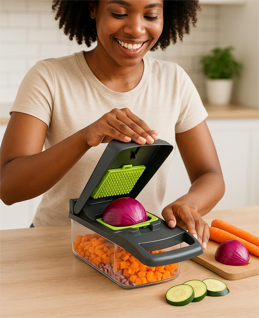 Avec la coupe légume multifonction, couper, trancher et râpervos légumes devient un jeu d’enfant —rapide, propre et sans effort.** Gagne du temps en cuisine et prépare des repas sains en quelques secondes, tout en évitant le désordre et les coupures."
